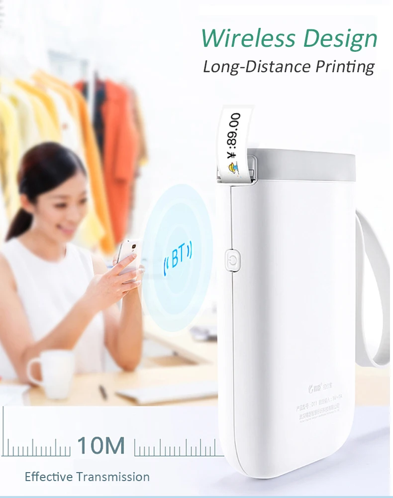 1. Wireless Bluetooth design, supports long distance printing.